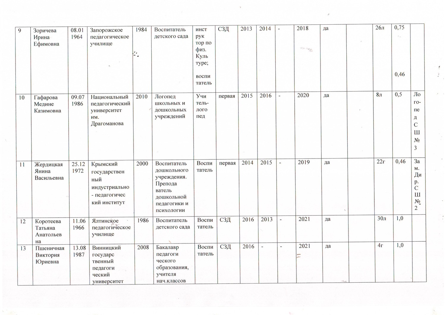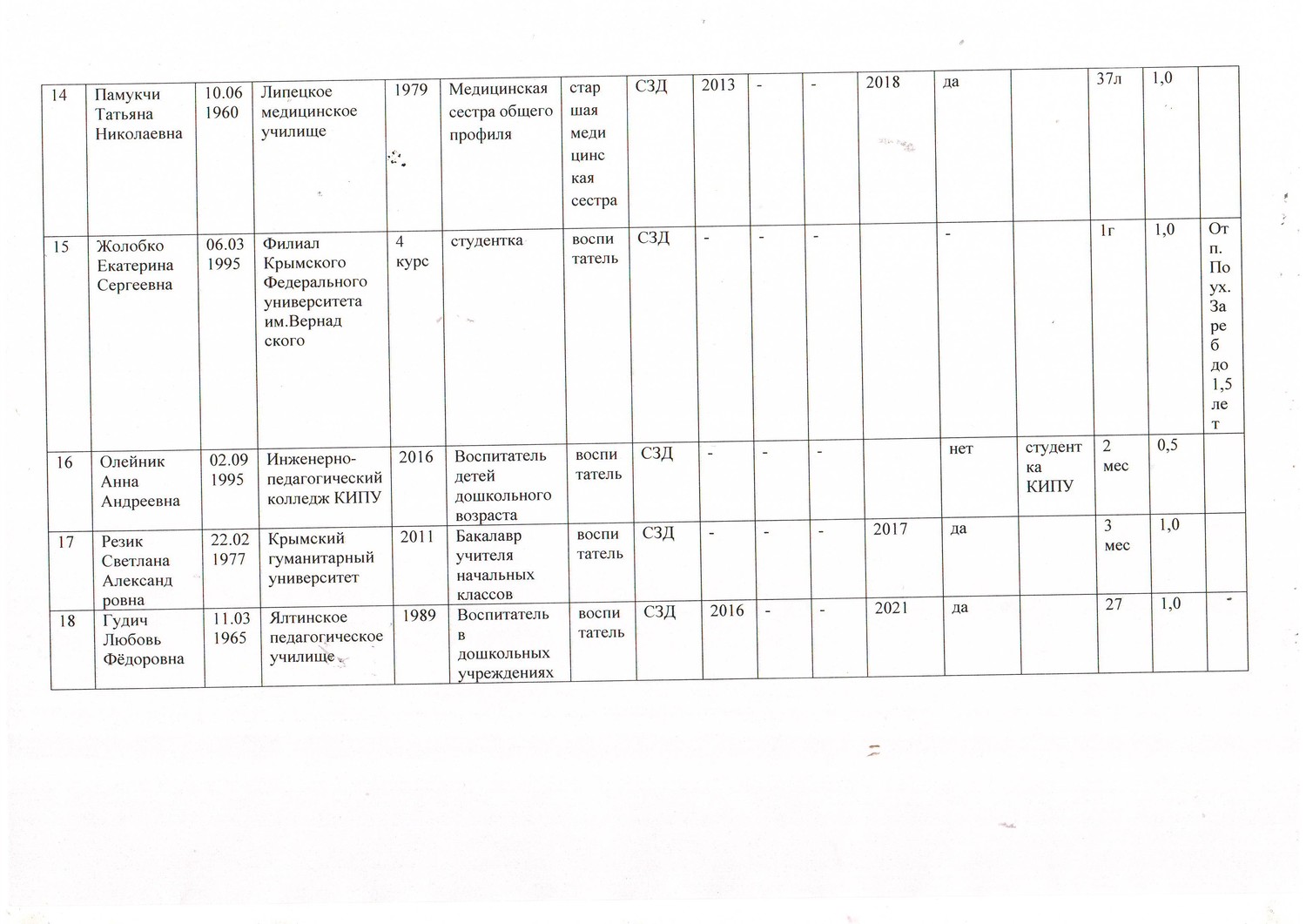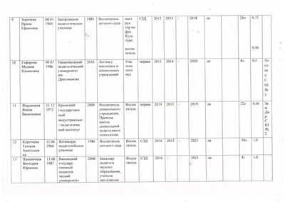Информация о персональном составе педагогических работников
